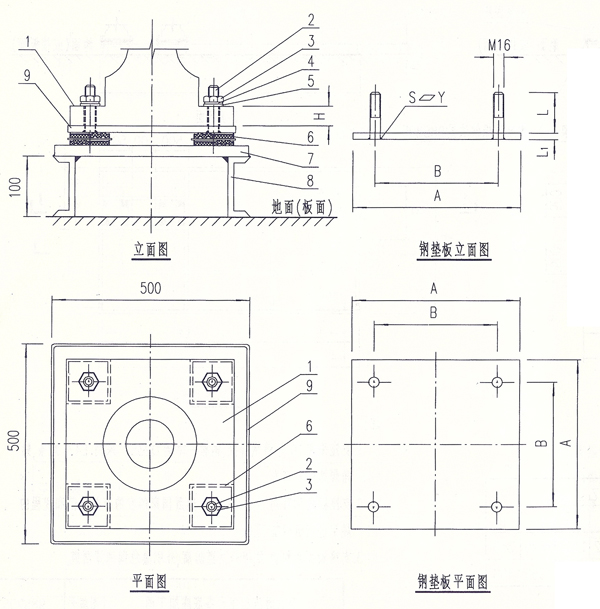 水泵減震隔振墊安裝示意圖